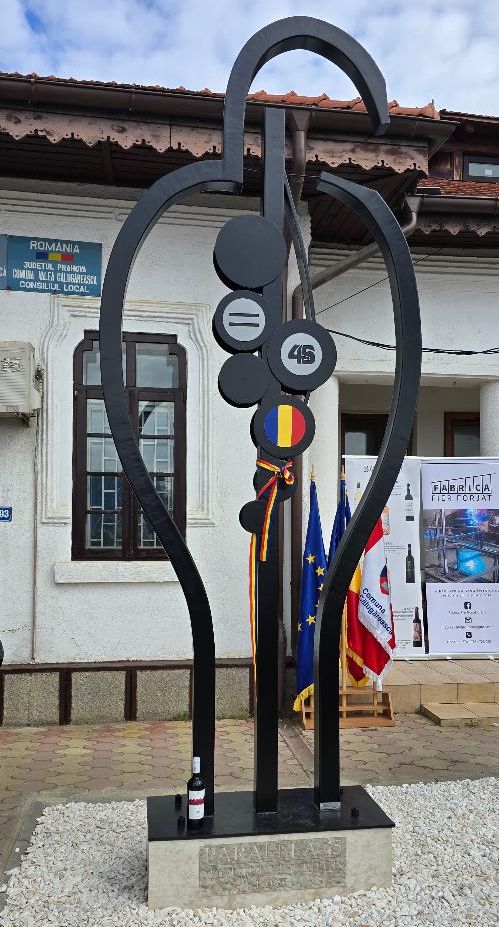 Paralela 45, tinutul vinurilor rosii. Monumentul marcheaza certificarea vinurilor rosii de referinta ale podgoriilor din Valea Calugareasca