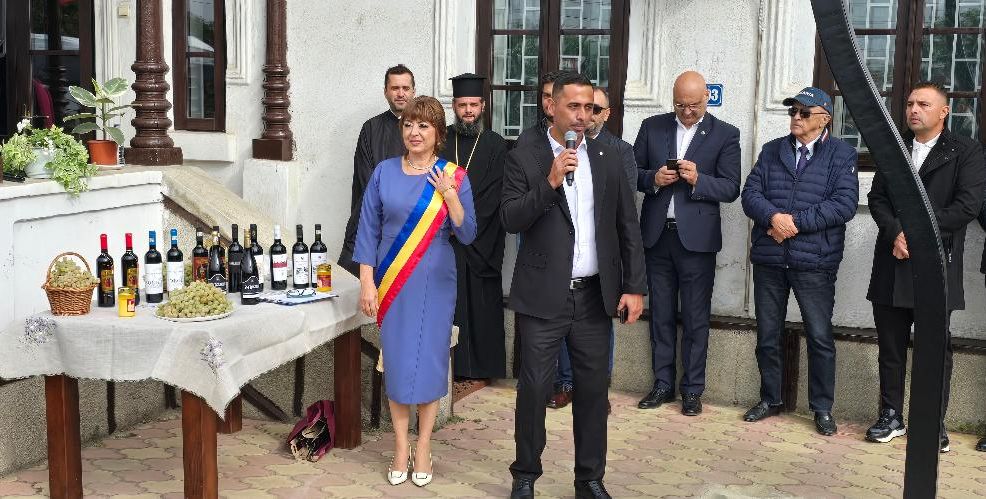 Eveniment national de exceptie la Valea Calugareasca, zona viticola unde se fac de mii de ani cele mai bune vinuri ale romanilor. La Primaria Valea Calugareasca din judetul Prahova s-a dezvelit monumentul “Paralela 45 – Tinutul vinurilor rosii” in prezenta a sute de invitati, intr-un cadru festiv cu cantece populare. La dezvelirea monumentului au participat Mircea Cosma (foto 2 stanga), expresedinte al CJ Prahova si presedinte al Societatii Cultural Istorice Mihai Viteazul (creatorul proiectului “Drumul Vinului” la care s-a raliat comunitatea celor 48 de producatori de vinuri din regiune); prefectul de Prahova, Daniel Nicodim; primarita Ioana Neagu din comuna Valea Calugareasca; reprezentantii ai Asociatiei Intracomunitara Tinutul Vinului Prahova si Asociatiei Bolgiu, condusa de unul din cei mai talentati producatori de vinuri ing. Costin Bolgiu (foto 3), reprezentanti ai Bisericii Ortodoxe Romane, precum numeroase personalitati publice.